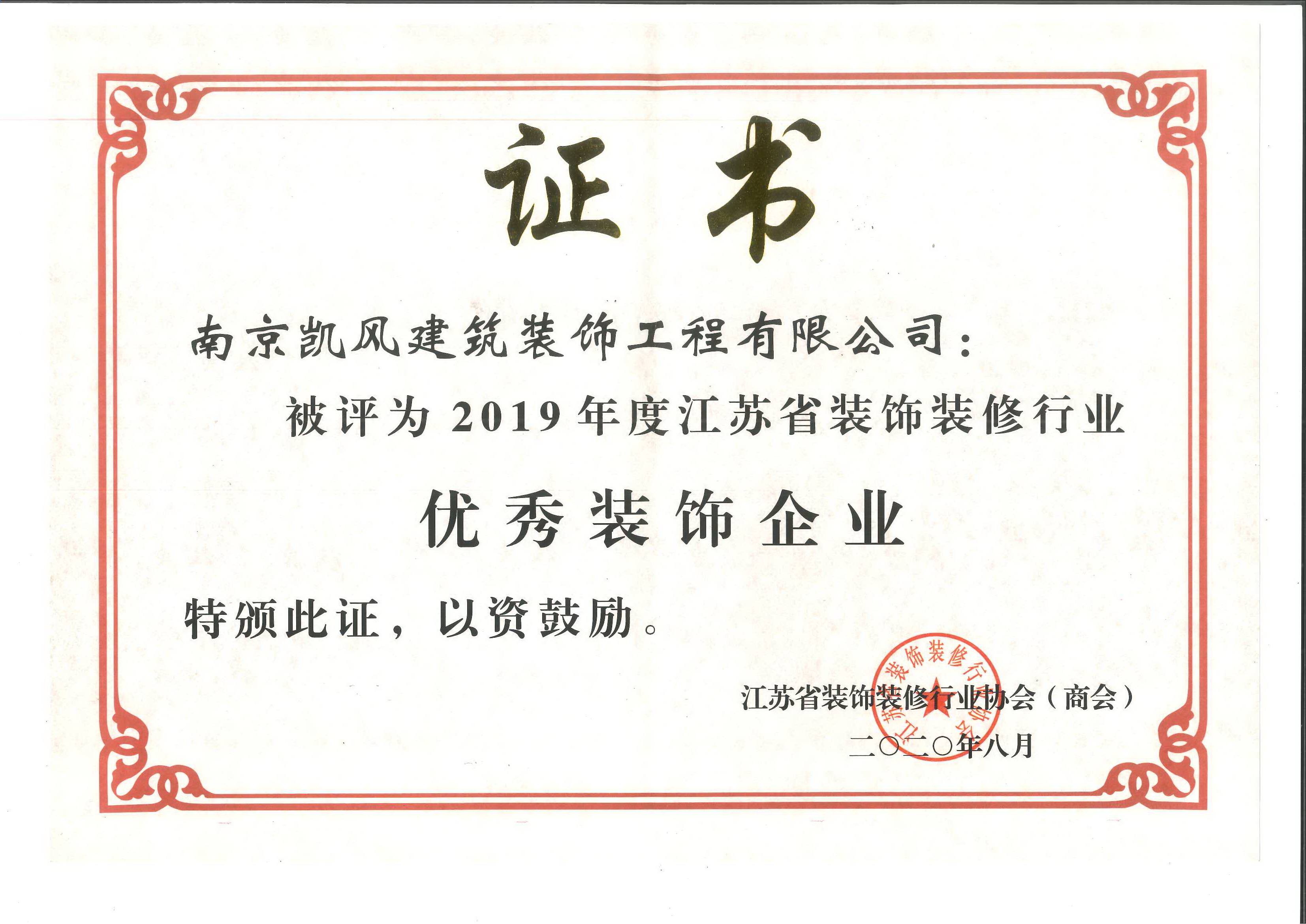 2019年度江蘇省優(yōu)秀裝飾企業(yè)